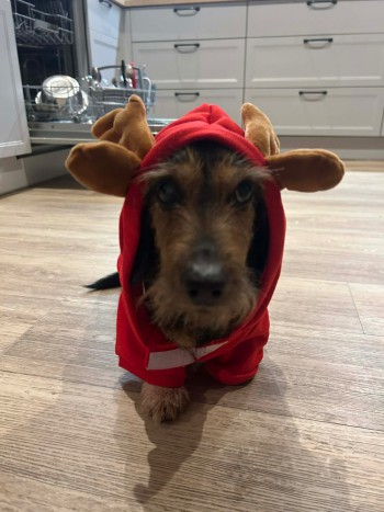 Mały jamnik szorstkowłosy. Ma 14 lat. Tatuaż w uchu A112. Niestety był bez obroży.