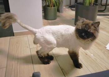Przyjazny, lgnie do ludzi. Ostrzyżony. Wygląda jak mały lew.