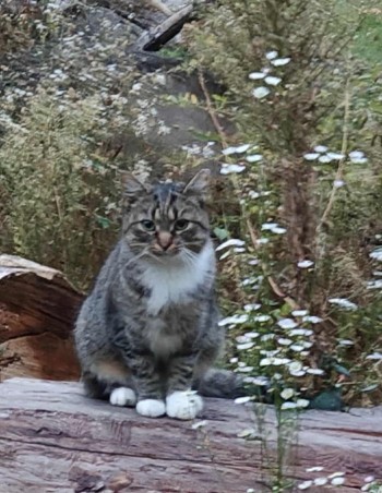 Umaszczenie: biało-bury (biały pyszczek, podbródek i szyja od spodu, pierś, łapki i brzuch; reszta ciała pręgowana, szarobura) • Oczy: żółto-zielone • Wiek: około 1–2 lata • Budowa: średnia, szczupła sylwetka, długi ogon • Charakterystyczne cechy: przycięte lewe ucho, różowy nosek, wyraźne prążki na czole i ogonie, białe „skarpetki” na łapach • Usposobienie: nieufny wobec obcych, łagodny i spokojny • Miejsce zaginięcia: ulica Kostki Potockiego, Warszawa • Data zaginięcia: 13 października 2025