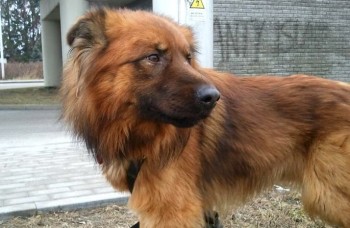Piesek duży, podobny do Owczarka Niemieckiego. Ma 3 lata. Długa ruda sierść, mała szara kropka na pysku. Bardzo lękliwy. Wygolona prawa, przednia łapa po kroplówce.