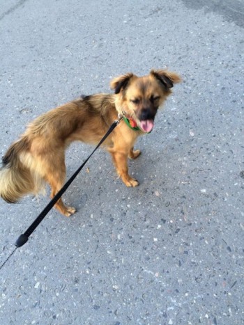 Chudy, brązowa sierść, niewysoki, długi ogon.