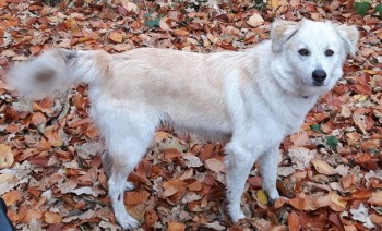 Suczka, rasa miesznana, maść beżowo-biszkoptowa, śierść krótka. Szczęśliwego znalazcę proszę o kontakt.