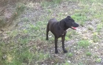 Zaginęła sunia, czarny, krótkowłosy mieszaniec,średni, 2 lata. Miała na sobie szarą odblaskową obrożę. Na lewym boku ma bliznę. Jest zachipowana.