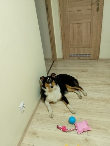 Szira owczarek szkocki długowłosy collie tricolor ma 19 miesięcy jest ufna do ludzi