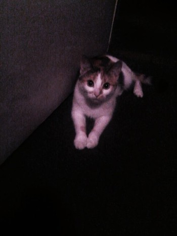Kotka maści trikolor (biało-rudo-czarna) wyszła z domu i nie wróciła. Nazywa się Demolka i często reaguje na imię (Demuś). Kotka ma niecałe 2 lata i nie jest zbyt ufna.