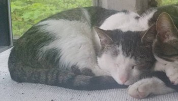 Buro-biały, nie lubi przebywać w zamknięciu. Szukam go już prawie rok. Lubi inne koty i wycieczki do lasu.