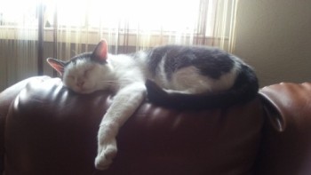 Kot wabi się Laki,kolor biały w czarne łaty na plecach i głowie. Charakterystyczne jest u niego chore lewe oko - łzawiące, przymknięte (zawijająca się powieka dolna do wewnątrz). Kocurek jest pod stałą opieką lekarza,wymaga codziennej pielęgnacji oka.