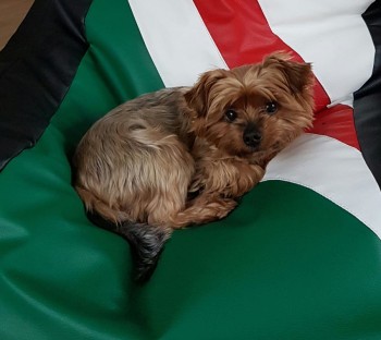 Piesek jest koloru stalowo - złota