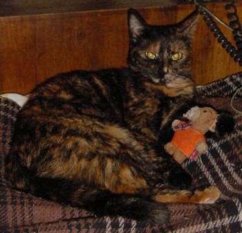 imię Farbka, szylkretka (czarno-hebanowo-rude), na brzuszku włosy dłuższe,rude, na mordce kolory sierści niesymetryczne, rudo-biała krawatka, jeden lewy wąs biały, w nocy jej oczy świecą na czerwono, posiada zieloną obróżkę (z imieniem i tel.). Proszę.
