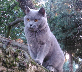 Niebieski kot brytyjski. Kolor sierści: szara Imię kota: Pikuś