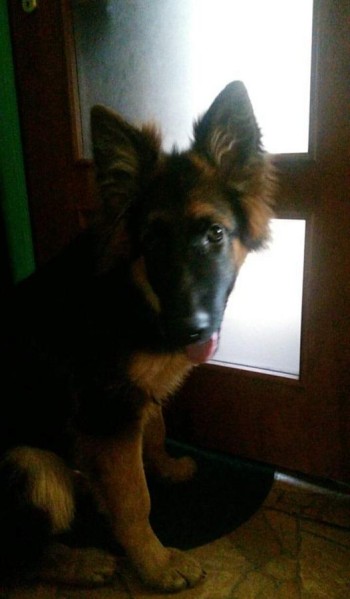 Zaginął 6 miesięczny pies rasy Owczarek Niemiecki Długowłosy. Ubarwienie: Czarny- Podpalany. Czerwona Obroża