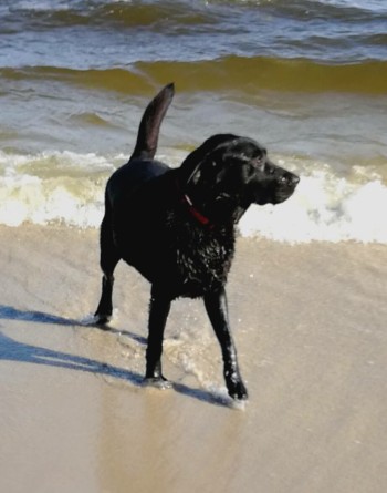 Pies wabi się Frugo, pies jest czarny,brzuszek przebarwia się na brązowo, Jak na labradora jest dosyć wysoki, smukły, Ostatnio miał na sobie obrożę niebieskiego koloru. Frugo jest młodym(14m-cy) wesołym psem, bardzo przyjacielskim,lubi zabawy i kąpiele.