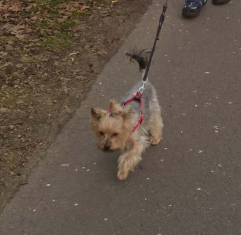 maść srebrna, 7 lat, jedno uszko sterczące a drugie opadające, powinna być w kucyku na głowie
