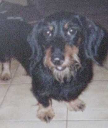 Jamnik, suka, szorstkowłosy, umaszczenie: czarne podpalane, miniaurka, prawie 10 lat, wabi się Pusia. Posiada chip (967000001277906)i nieczytelny tatuaż w lewym uchu. Zaginęła w Poznaniu sprzed sklepu przy ul. Kadłubka (Jeżyce).