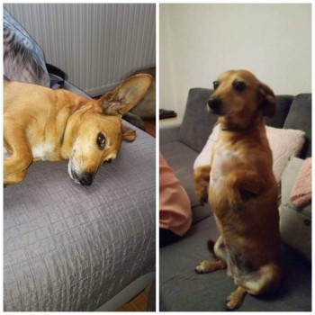 Mały, rudy kundelek w typie jamnika, reaguje na imię Bafi