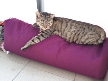 Kicia uciekła z nowego domu, nie zna okolicy. Na prawym uchu u góry ma małą dziurkę. Ma wyraźne ciemne pręgi. Jest przyjazna do ludzi, lasi sie. Może nie reagować na wołanie, ale biegnie chętnie do dźwięku piłeczki zabawki z dzwoneczkiem w środku.