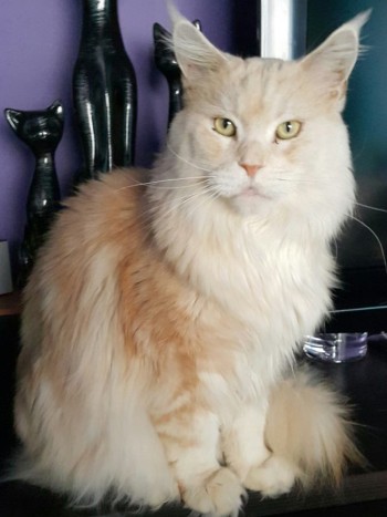 Duży, kremowy kocur. Z puchatym ale przetłuszczonym ogonem.