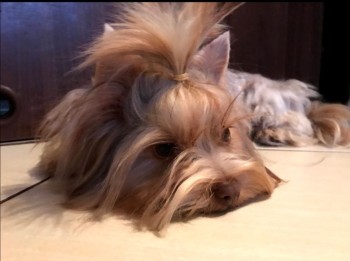 Suczka Wabi sie Daisy jest koloru bialo brazowego, ulegla kovhakaca dzieci, ma klapniete uszka