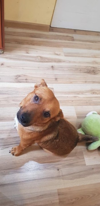 Barwa ruda wzrost średni krótkie łapy waga 13 kg stojące uszy amputowana końcówka ogona