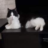 Duży kot z długą sierścią, domowy, lecz złapany był jako dziki nie zna okolicy. Czarno biały