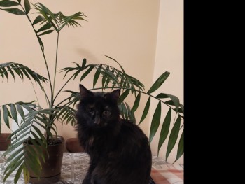Kotka norweska leśna, maści szylkret. Drobnej budowy ciała, z długą siercią. Miała uszkodzone prawe oczko i teraz jest takie specyficzne, "dziwne".
