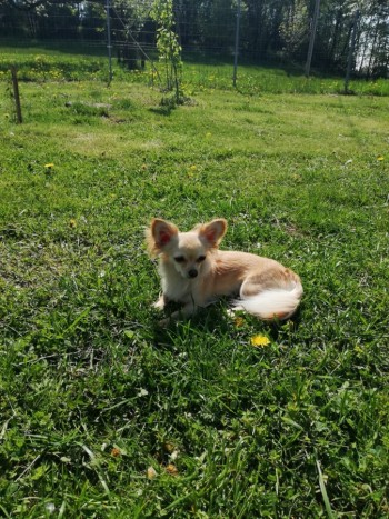 Zagubiła sie chihuahua Luna biało kremowa długowłosa