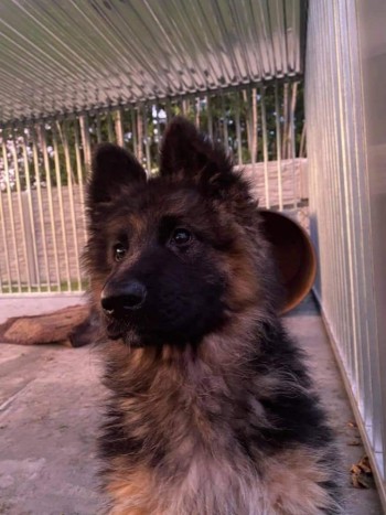 Owczarek niemiecki, maść czarno podpalany, długowłosy
