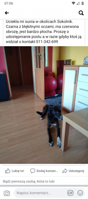 Czarna, błękitne oczy , 6-letnia sunia, bardzo płocha