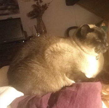 GRYPS-13 letni kocurek Syjamski. Mały maruda o bardzo jasnych oczach. Niebieska obroża.