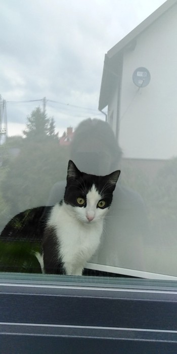 Roczna czarno biała kotka. Nazywa się Lusia lecz niestety nie reaguje na imię. Na jednej przedniej łapce jeden opuszek ma czarny reszta różowa. Kotka ma koci trądzik na brodzie. Kotka jest wysterylizowana i zaczipowana.