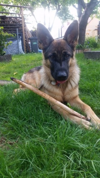 Młody, przyjazny owczarek niemiecki, reaguje na imię Costa.