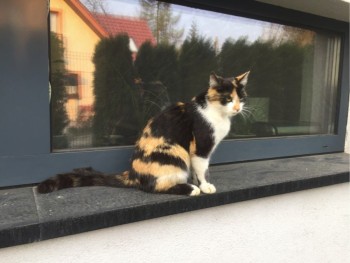kotka, charakterystyczna czarna koncowka nosa, tricolorka