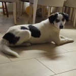 Znaleziony w godzinach wieczornych w Popielawach. Średniej wielkości, pręgowany. Bardzo przyjazny i towarzyski.