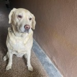 Czarny duży pies w typie labradora boi się ale nie jest groźny jest dosyć zadbany