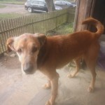 Rudy, średniej wielkości piesek, wiek 6-8 lat, brązowe klarowne oczka, łagodny, lubi dzieci, psy i koty... Płacze za wlascicielem