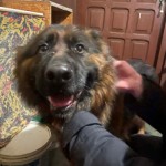 Suczka typu owczarek niemiecki, czerwona obroża, bardzo łagodna i przyjazna