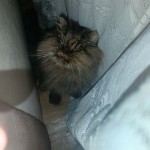 Kot w typie norweskiego leśnego zmieszanego z persem, duży, ale wychudzony. Kotka. Znaleziona w gminie Kruklanki