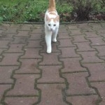 Kotek rudo-biały. Ma charakterystyczną białą plamkę na grzbiecie pośród reszty rudego futerka. Bardzo przyjazny i miziasty.