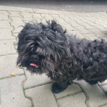 Czarny pies, około 5kg ma obroże błąka się po końcowym na potkanowie