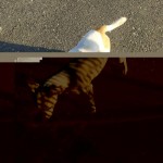 Raczej młody kot znaleziony na wale, ma charakterystyczny ciemny nosek i czerwona obrożę. Sierść szaro- biała.