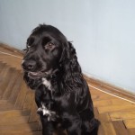 jasna, świeżo obcięta, zadbana, zakręcony ogonek, obróżka przeciwkleszczowa związana