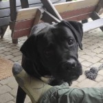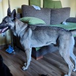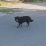 Duży czarny, miodowe oczy, nie pozwala do siebie podejść, nie jest agresywny tylko nieufny. Znajduje się na zewnątrz posesji ponieważ mamy dwa psy.