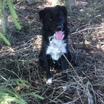 Suczka ma obroże z czerwoną kostka, może adresówka, ale nie dała się złapać aby coś z niej odczytać, strachliwa