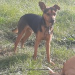czarny-podpalany.Wysokość do łydki.Ma brązową obrożę i karabińczyki.Przyjazny.Typ uciekiniera.Nie lubi samców.Nie ma czipa ani adresówki