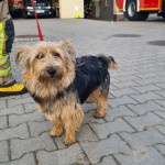 W niedzielę, 5.12.2021, ok. 8:40 na strażaków OSP Łomianki czekał taki psiak. Biegał razem z czerwoną obrożą i smyczą. Zabezpieczony przez Straż Miejską. Nie ma czipa.