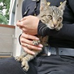 Czarny kot z niebieską smyczą. Ufny wobec ludzi. Znaleziony na Cmentarzu przy ul. Wałbrzyskiej w Warszawie. Przekazany Eko-patrolowi Straży Miejskiej i przewieziony do Schroniska na Paluchu