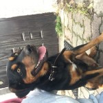Przybłąkał się młody przyjazny piesek.Bernardyn.Ma obrożę.