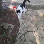Kot około 1-2 lata. Nie posiada chipa- sprawdzone u weterynarza. Sierść czarna z niewielkim białym krawatem i pojedynczymi białymi włosami na grzbiecie. Otwarty na ludzi. Korzysta ładnie z kuwety. Lubi się ocierać i głaski.