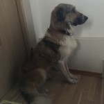 Zwierzak zostal porzucony, najprawdopodobniej przywieziony samochodem. Stoi w polach i czeka na swojego pana.