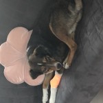 Pies znaleziony w szelkach, trafił do schroniska w Piotrkowie Tryb. Duży, łagodny. Starszy